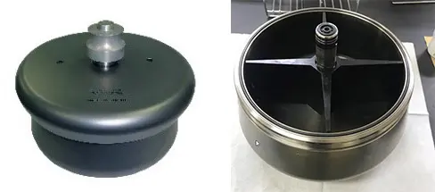 Eppendorf 超速離心機中其實還有一種處理通量相對較大的選擇:區帶轉子 P32ZT。 該轉子擁有1.69 L處理通量,腔室被從十字隔板劃分為四個扇形區室, 阻止溶液在離心池中旋轉,葉片上有徑向導管,溶液通過導管從中心流向轉子體外壁。