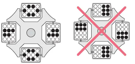 不能按照軸對稱進行配平(除非同時滿足軸對稱和中心對稱)